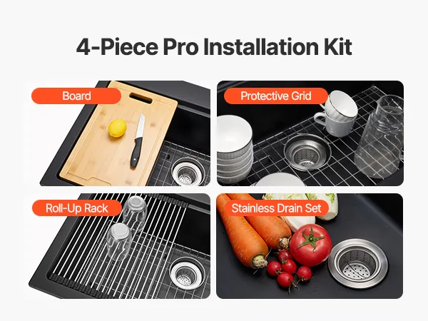 A: Die vorgestanzte Schablone und die Montageclips ermöglichen eine präzise Ausrichtung. Das Design der Arbeitsplatzspüle vereinfacht die Installation – selbst Anfänger können sie mit der Schritt-für-Schritt-Anleitung durchführen.