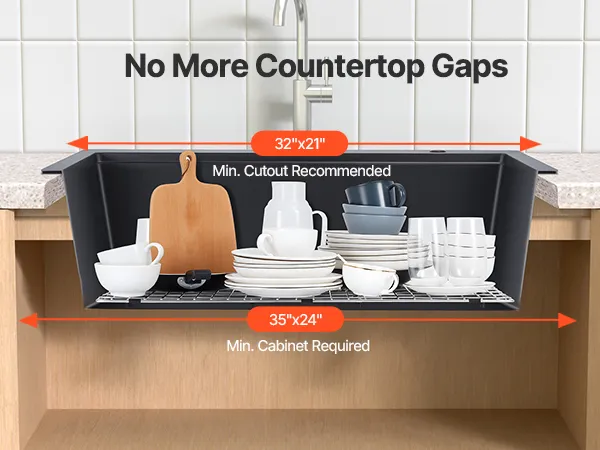 Präzise Schablonenmontage: Das Einbauwaschbecken passt in Schränke mit einer Größe von 35 x 24 Zoll (900 x 600 mm) und einem empfohlenen Ausschnitt von 32 x 21 Zoll (815 x 535 mm). Enthält eine Schablone für die präzise Ausrichtung der Küchenspüle. Folgen Sie der Anleitung zur Installation von Einzelbecken-Küchenspülen