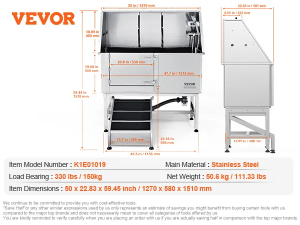 Dies ist eine wertvolle Investition für Tierbesitzer. Das gut verarbeitete Design sorgt dafür, dass die Wanne bei Ihrer Pflegeroutine zuverlässig bleibt. Die robuste Konstruktion sorgt dafür, dass sie auch bei regelmäßiger Nutzung hält. Edelstahl widersteht Rost und Korrosion. Es ist also eine ausgezeichnete Wahl. Einfache Reinigung und Wartung: Dieses Material ist auch leicht zu reinigen und zu pflegen. Die robuste Konstruktion garantiert eine langfristige Nutzung ohne Verschleiß. Edelstahl in Profiqualität hält die Wanne in Top-Zustand. Diese Haltbarkeit macht sie unglaublich langlebig. Sie sollten in diesen Hundefriseur investieren. Unser robustes Design sorgt dafür, dass die Badewanne während der täglichen Pflegeroutine sicher ist!