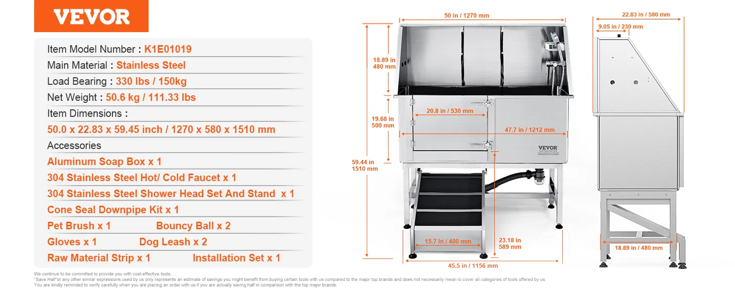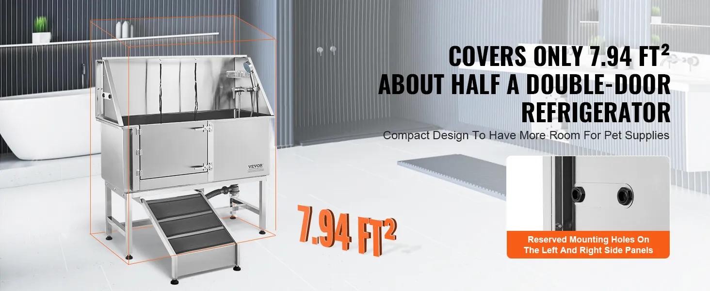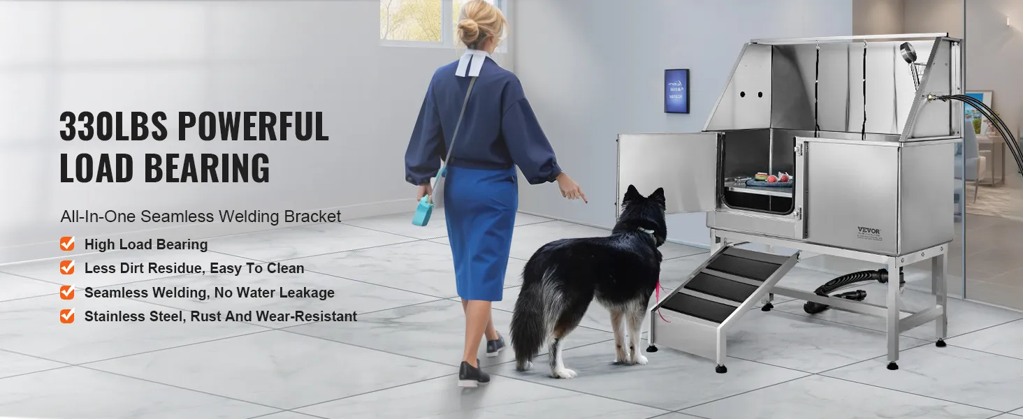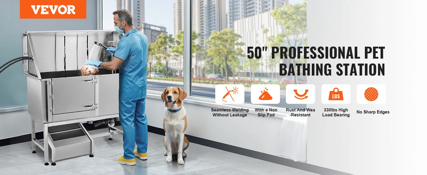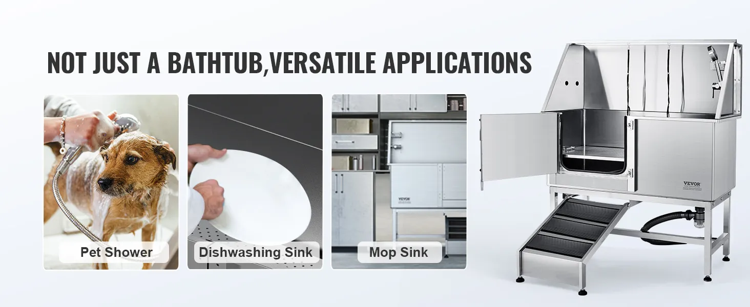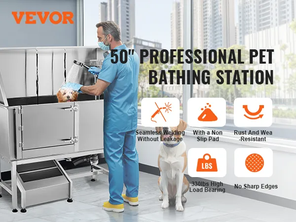 Es kann sowohl zu Hause als auch in der Gemeinschaft verwendet werden. Dies macht es zu einer wertvollen Ergänzung für jede Umgebung. Egal, ob Sie die VEVOR 50" Hundebadestation für den persönlichen oder öffentlichen Gebrauch verwenden, sie erfüllt verschiedene Anforderungen. Die robuste Konstruktion stellt sicher, dass sie starker Beanspruchung in Gemeinschaftsumgebungen standhält. Durch die einfache Montage ist sie für den Heimgebrauch geeignet. Diese Vielseitigkeit stellt sicher, dass sie verschiedenen Pflegeanforderungen gerecht wird. Unser anpassungsfähiges Design passt perfekt zu unterschiedlichen Räumen und Anforderungen. Daher empfehlen wir sie als flexible Wahl für Tierbesitzer und Gemeinschaften gleichermaßen.