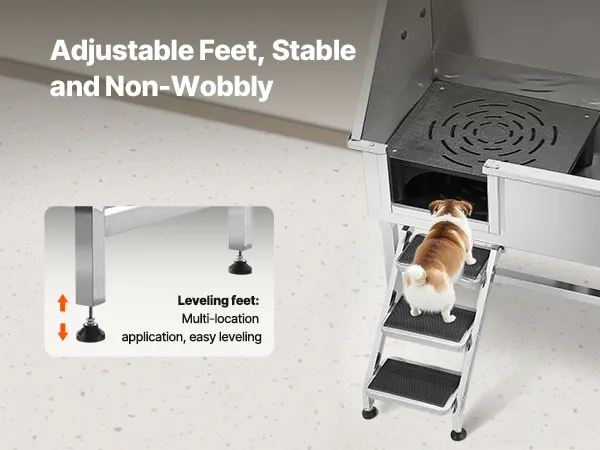 Rutschfest und auslaufsicher: Das verbesserte Dichtungssystem und die rutschfesten Stufen mit Begrenzungslöchern sorgen für Stabilität und verhindern Wackeln und Ausrutschen beim Ein- und Aussteigen der Haustiere. Das Ablaufset hält Gerüche fern und sorgt dafür, dass sich beim Baden kein Wasser ansammelt und nichts ausläuft