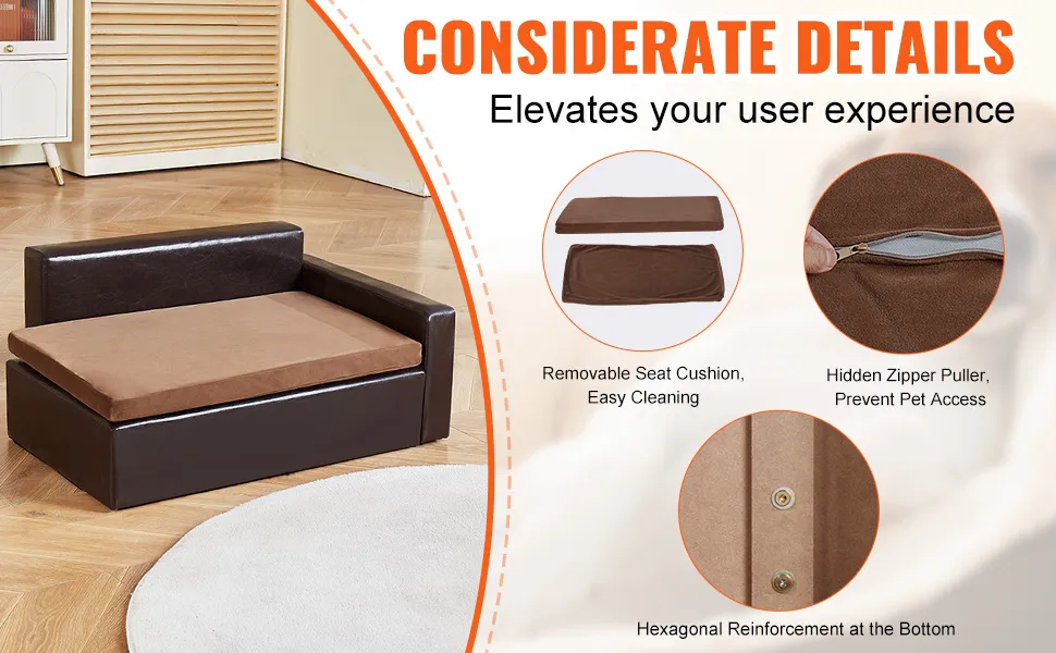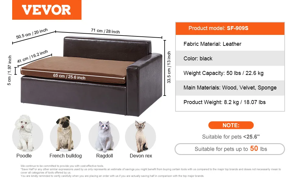 Dieses Haustiersofa von VEVOR ist für mittelgroße Haustiere konzipiert. Es misst 28 x 20 x 13 Zoll. Daher bietet es reichlich Platz und Komfort für eine Vielzahl von Haustiergrößen. Von kleinen Chihuahuas bis hin zu großen Golden Retrievern, es passt für alle. Das robuste Design trägt bis zu 110 Pfund. Dies macht es ideal für größere Rassen. Sie können es für Haustiere jeden Alters anpassen, einschließlich aktiver Welpen und älterer, entspannterer Hunde. Außerdem eignet sich das Sofa gut für Haushalte mit mehreren Haustieren. Ihre Haustiere können zu Hause einen gemütlichen und sicheren Rückzugsort genießen.