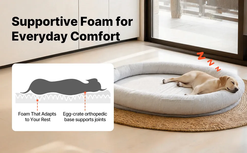 Mit seinem mittelfesten Liegegefühl, das sich den Konturen anpasst und Verspannungen löst, bietet das riesige Hundebett ein stabiles und entspannendes Liegegefühl, in dem sich Ihr Körper wohlfühlt. Die ausgewogene Unterstützung sorgt für sanftere, ruhigere und angenehm lange Ruhephasen.