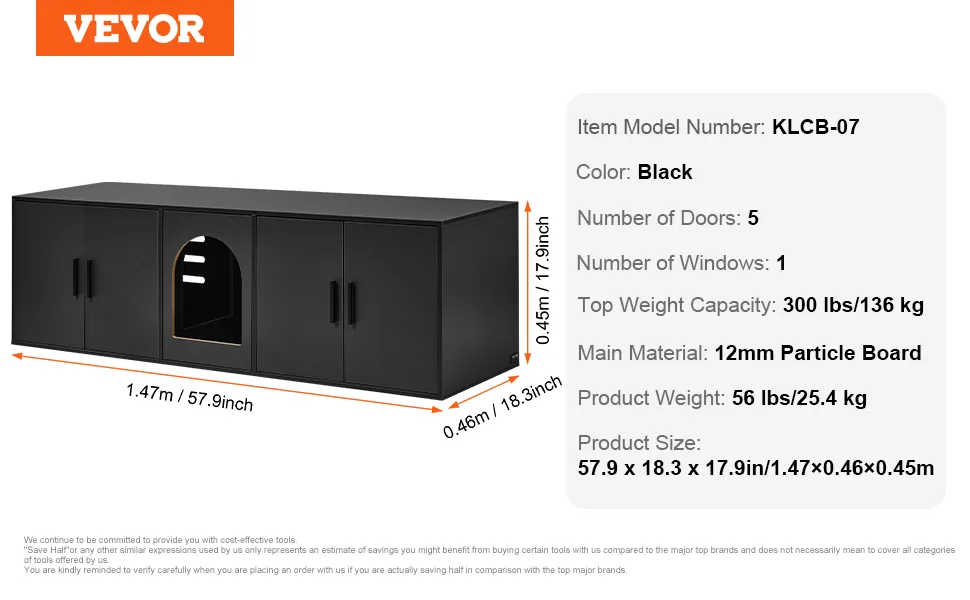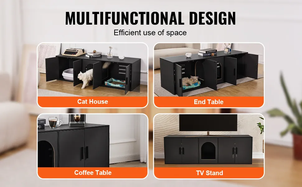 VEVOR Katzenschrank, 1,47x0,46x0,45 m, Katzentoilette, Katzenklo Schrank mit Doppelbett, Innen-Tierhaus aus Holz, TV-Ständer, Beistelltisch, passend für die meisten Katzentoiletten, Schwarz