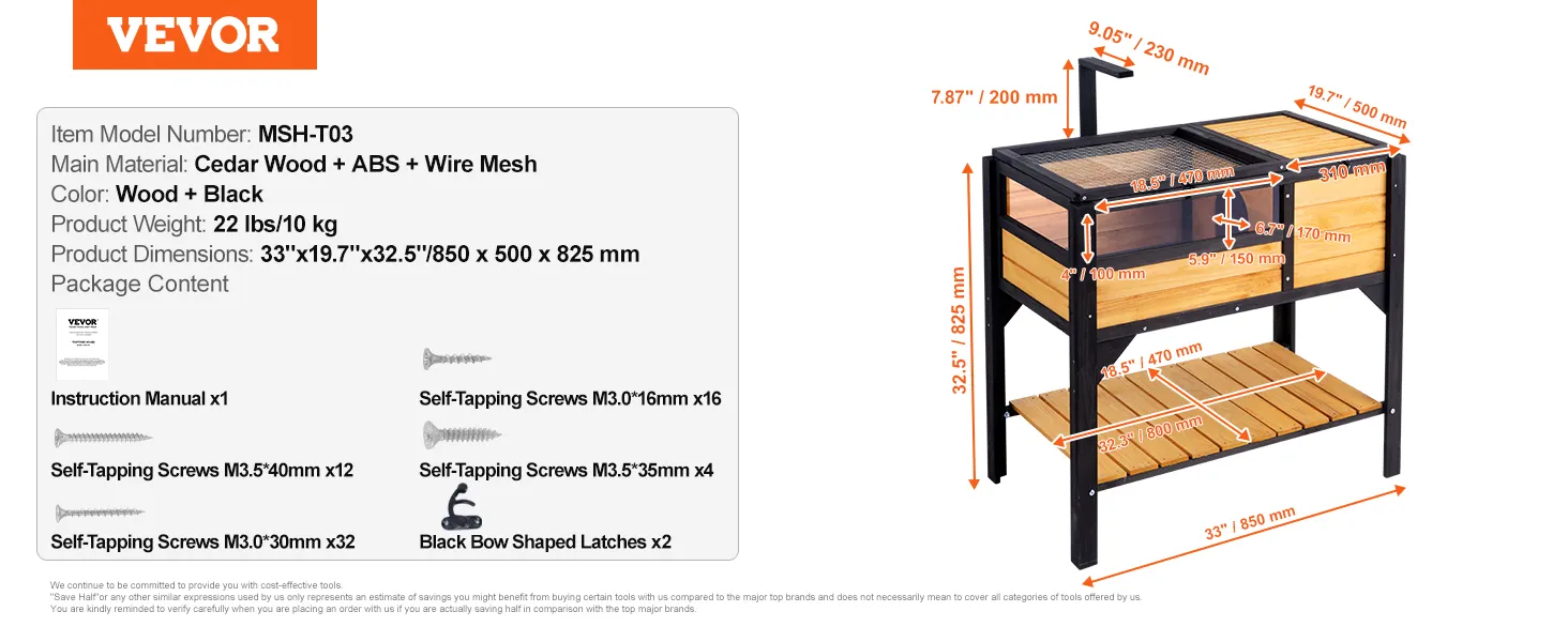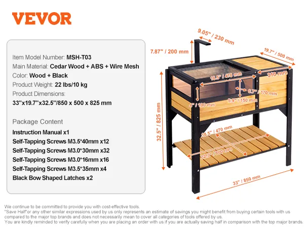 Spacious two-room enclosure: Our tortoise house features two separate areas: a private sleeping area with a solid wood platform and an open activity area with a metal mesh window. Measuring 850 x 500 x 825 mm and featuring a leg frame with a sturdy storage shelf, it allows you to conveniently store pet food and other supplies, making feeding easy and space-saving!
