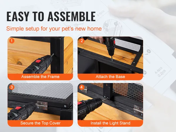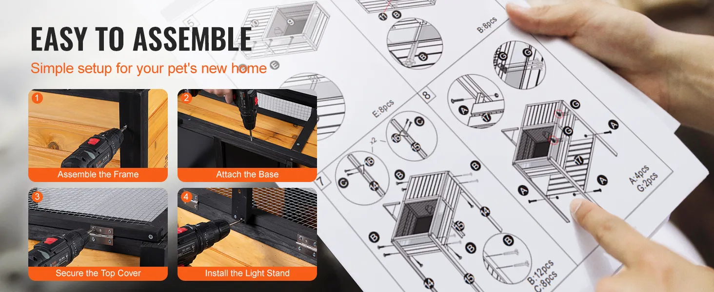 Easy assembly: The tortoise enclosure is designed for easy assembly and includes pre-drilled holes and assembly instructions. Even if you've never assembled similar products before, you can easily put it together and provide your pet with a stable, comfortable home!