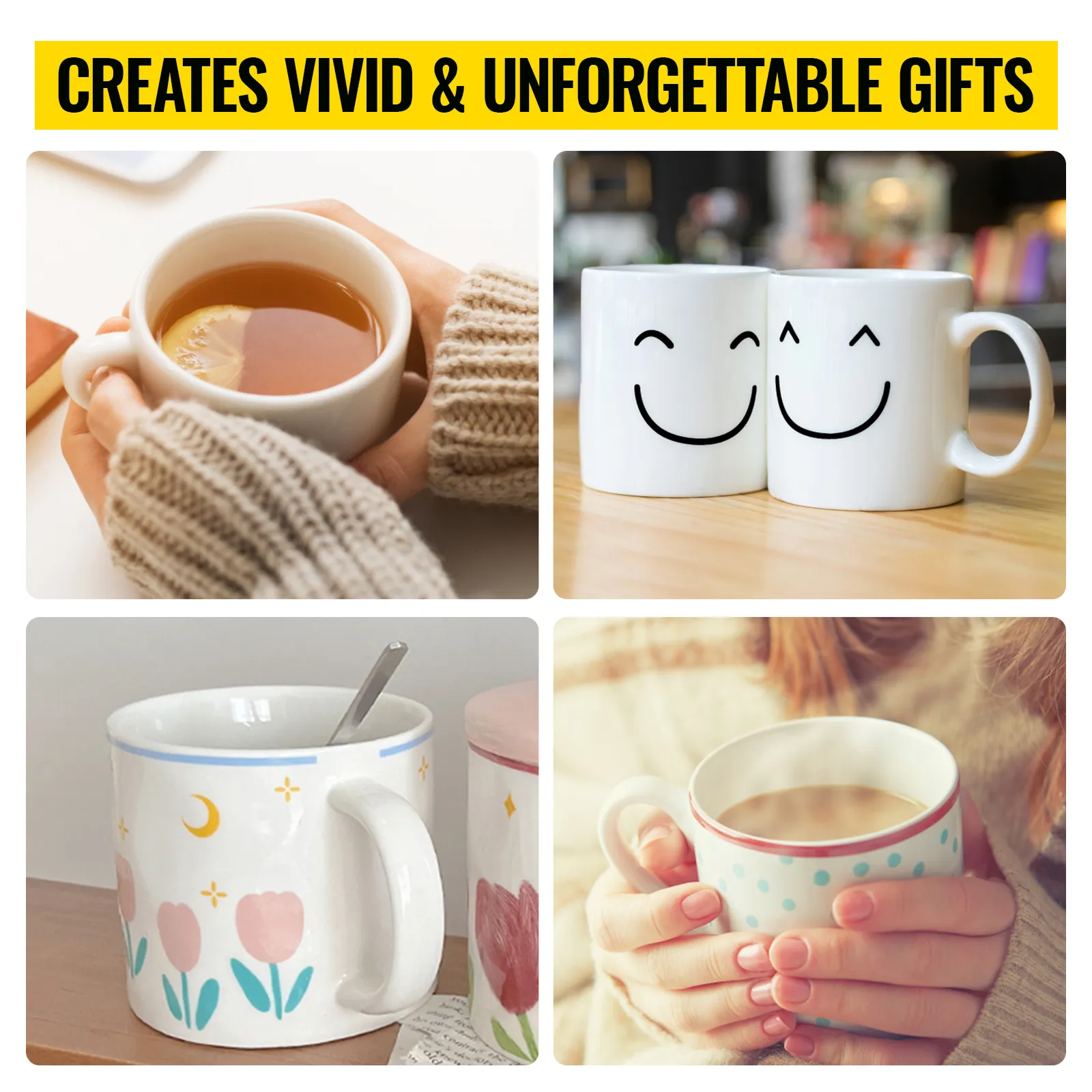 Egal, ob Sie ein Anfänger oder ein Profi sind, der Heimwerkerarbeiten liebt, dieses Element ist einfach und bequem zu verwenden. Und die DIY-Tassen, die Sie herstellen, sind perfekte Geschenke für Geburtstage, Feierlichkeiten, Abschlussfeiern und Hochzeiten.