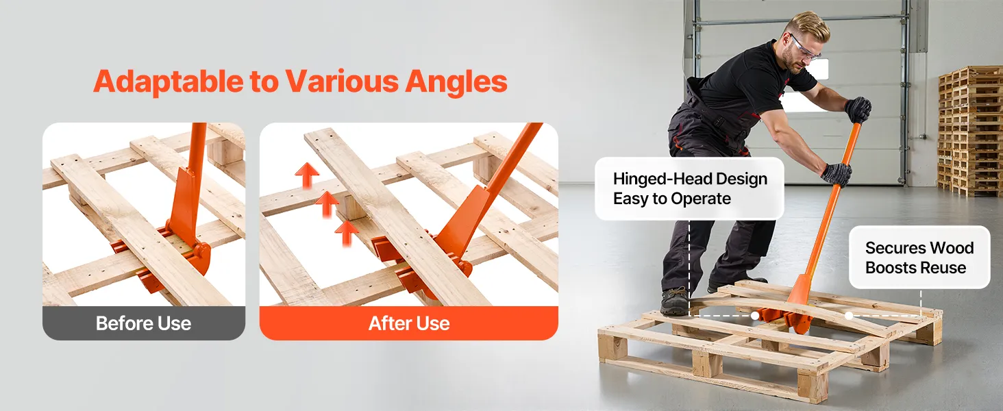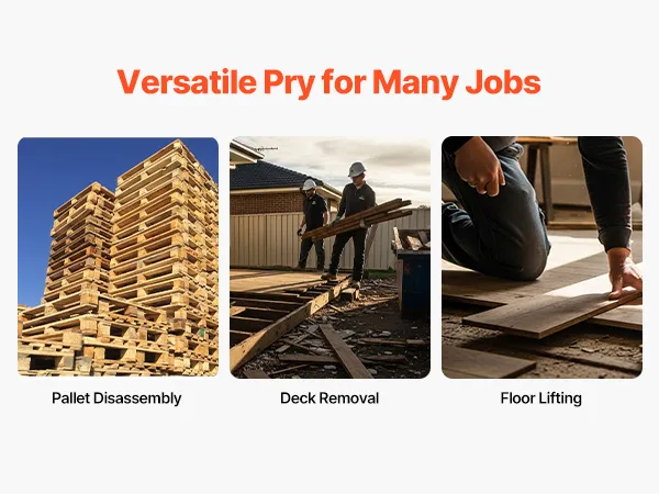 Dieses Werkzeug zum Entfernen von Terrassendielen eignet sich zum Zerlegen von Paletten, zum Entfernen von Terrassendielen und zum Anheben von Dielen. Sie können es bedenkenlos im Lager, auf der Baustelle oder bei Heimwerkerprojekten einsetzen.