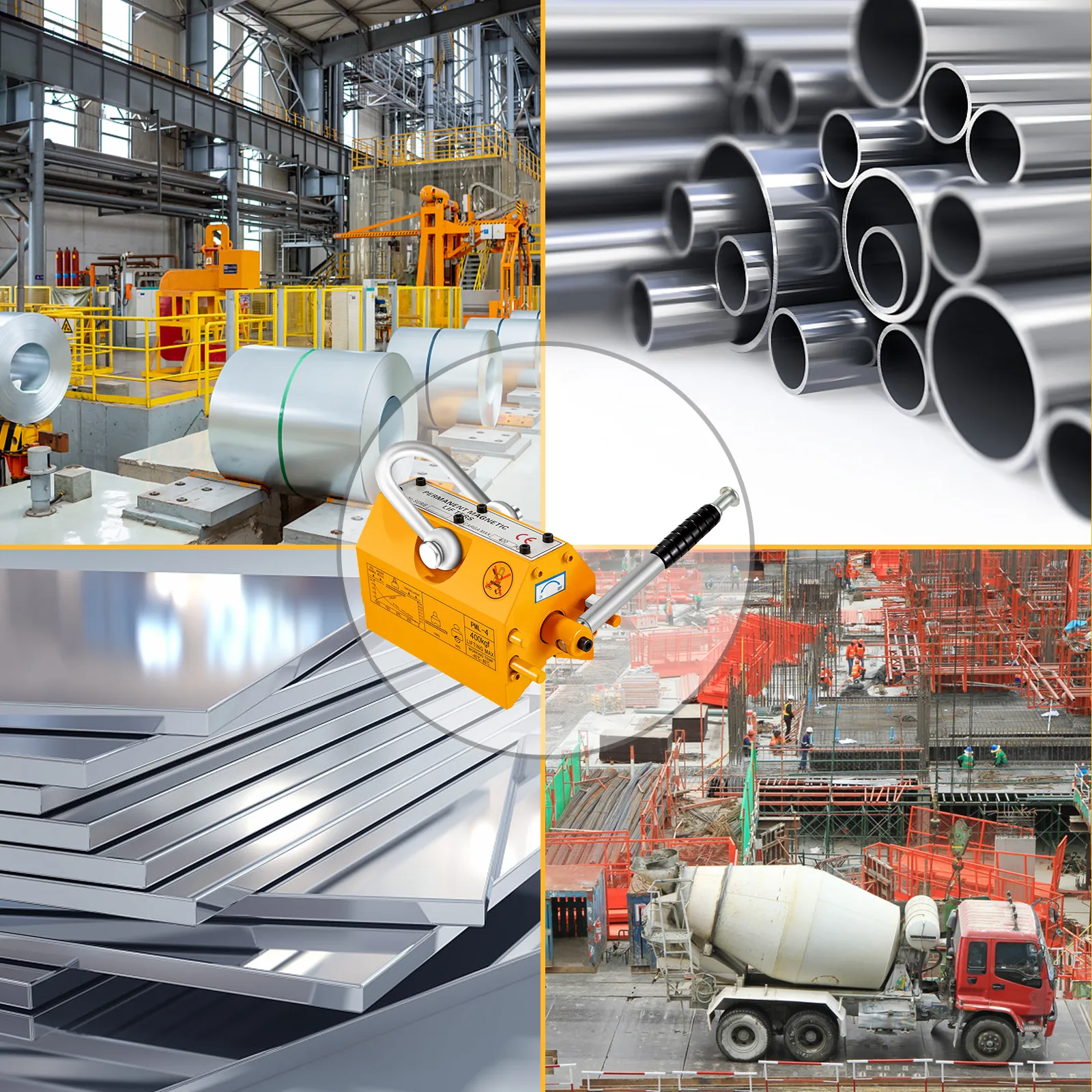 【ERWEITERTE ANWENDUNGEN】 - Es ist ideal zum Heben von Anlagen für Fabriken, Docks, Lagerhäuser, Transport-, Stahl-, Automobil-, Maschinenbau- und Bergbauindustrien, die zum Heben von Stahlrohren, Blöcken, Stangen, zylindrischen und anderen magnetischen Materialien verwendet werden.