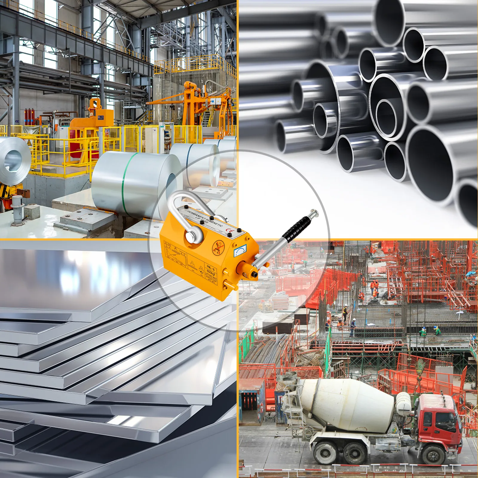 【ERWEITERTE ANWENDUNGEN】 - Es ist ideal zum Heben von Anlagen für Fabriken, Docks, Lagerhäuser, Transport-, Stahl-, Automobil-, Maschinenbau- und Bergbauindustrien, die zum Heben von Stahlrohren, Blöcken, Stangen, zylindrischen und anderen magnetischen Materialien verwendet werden.