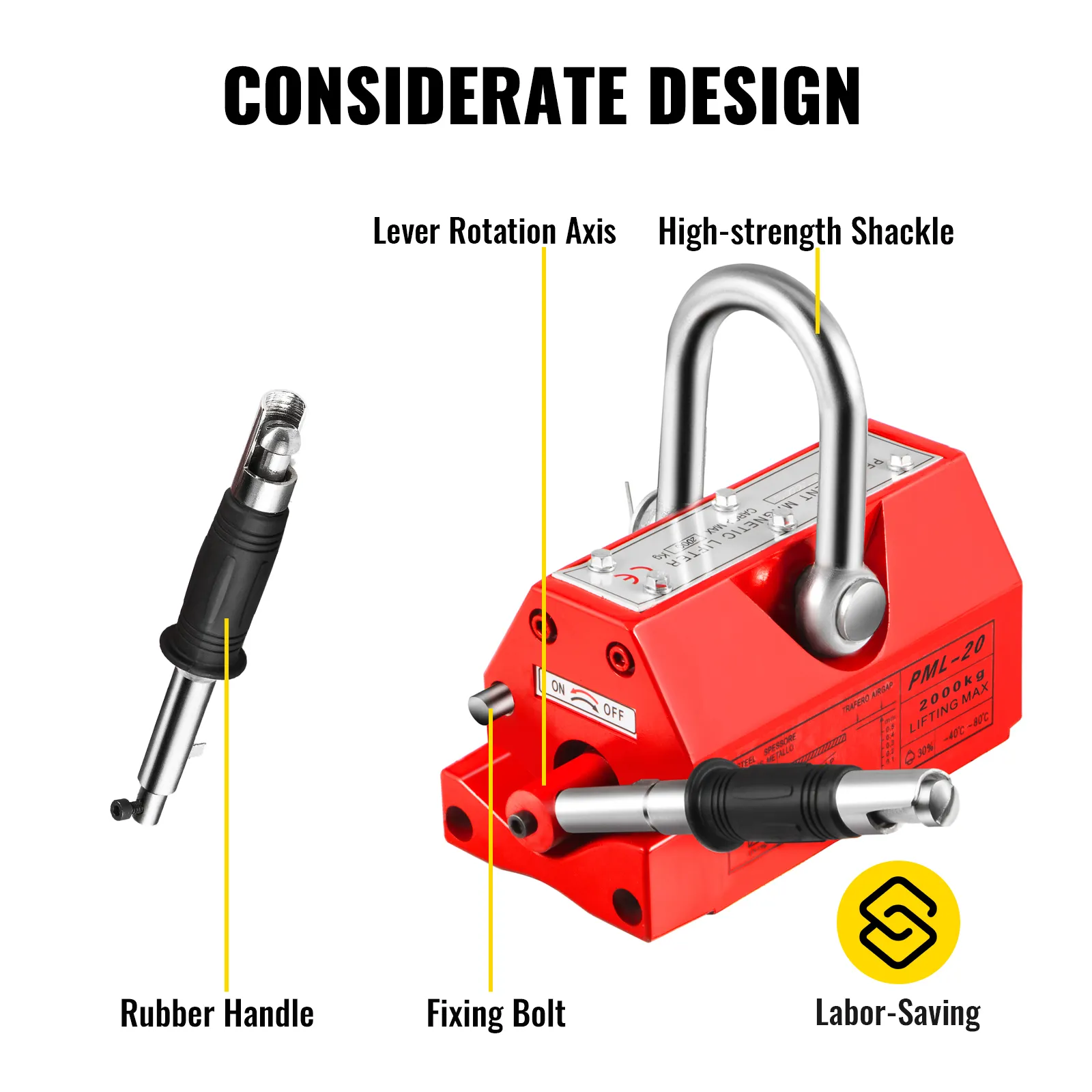 Ausgestattet mit superstarken Neodym-Eisen-Permanentmagneten, ist der Magnetheber geeignet zum Heben von Stahlblechen, Blöcken, Stangen, zylindrischen und anderen magnetischen Materialien. Er benötigt keine Elektrizität, was in der industriellen Welt für eine effizientere Handhabung von Stahl weit verbreitet ist. Jeder Artikel muss qualifiziert getestet werden, bevor er ab Werk verschickt wird.