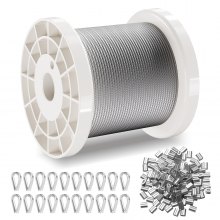 VEVOR wire rope set, 3.18mm x 30.5m, 316 stainless steel cable with 20 ferrules & 10 thimbles, 7.1kN breaking strength, 7x7 strands, marine/aircraft grade for handrails, stairs, terraces, and outdoor fences