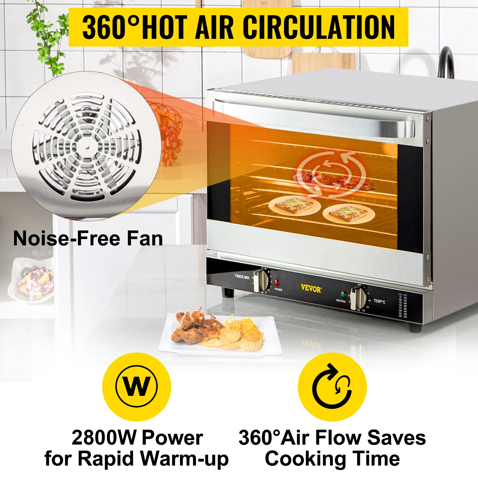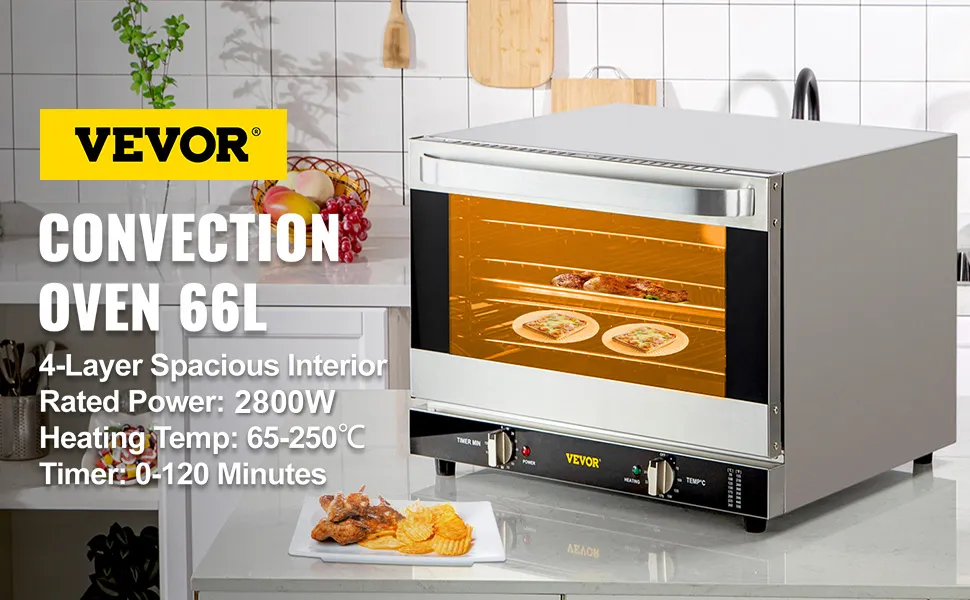 Das Heizelement dieses Ofens liefert 2800 W Leistung für ein schnelles Aufwärmen und einen zuverlässigen Heizeffekt. Der geräuschlose Ventilator zirkuliert kontinuierlich heiße Luft durch die Kammer, steigert die Kocheffizienz und backt Speisen gleichmäßig ohne heiße oder kalte Stellen.