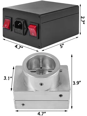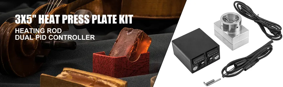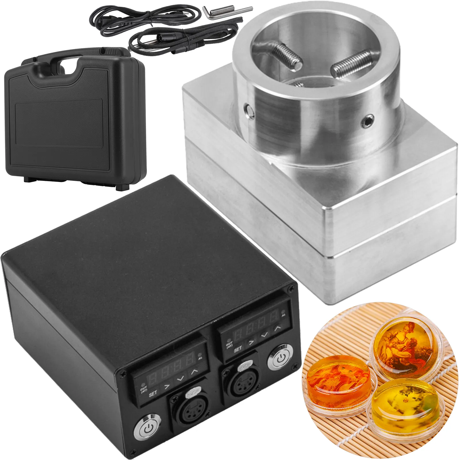Beheizte Heizplatte (oben und unten) mit zwei Heizstäben, ein doppelter PID-Regler, zwei Heizungen, zwei Temperaturfühler, notwendiges Zubehör für Kolofonium-Press-Kit wird bereitgestellt.
