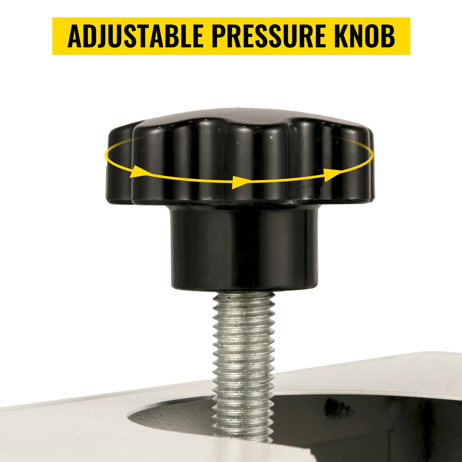 Die Hemdenpresse verfügt über einen Druckregler an der Oberseite, mit dem der Druck gleichmäßiger auf die gesamte Platte verteilt werden kann. Der Druck kann je nach Dicke und Beschaffenheit des Materials eingestellt werden.