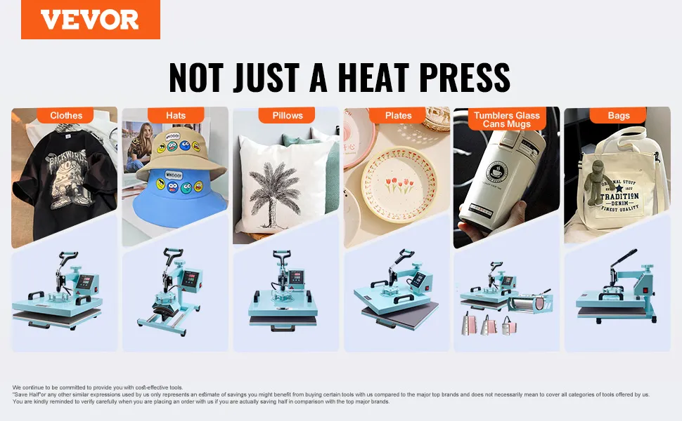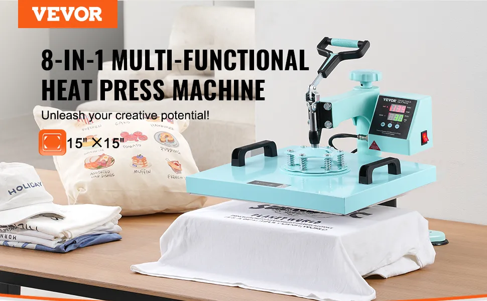 Unsere Heißpresse verfügt über verschiedene Aufsätze, mit denen Sie mühelos schöne Motive auf T-Shirts, Kissenbezüge, Hüte, Tassen und Keramikteller übertragen können und so Ihrer Kreativität freien Lauf lassen.