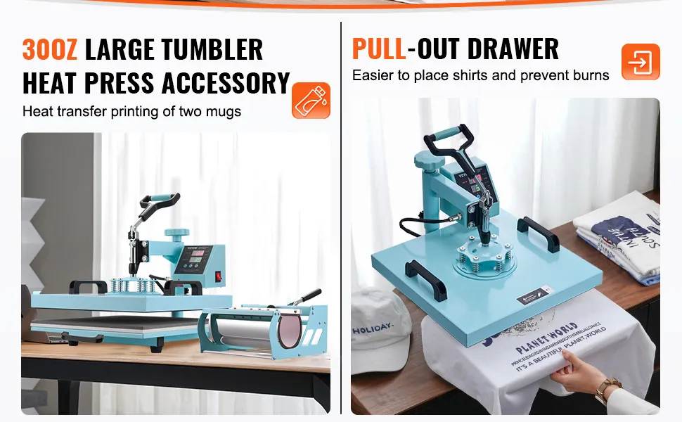 Sie bietet Platz für zwei Standardbecher und macht Ihre Arbeit effizienter! Unsere Heißpressmaschine verfügt über eine ausziehbare Schublade, um die Sicherheit zu erhöhen und Verbrennungen beim Einlegen und Entnehmen von Gegenständen zu vermeiden.