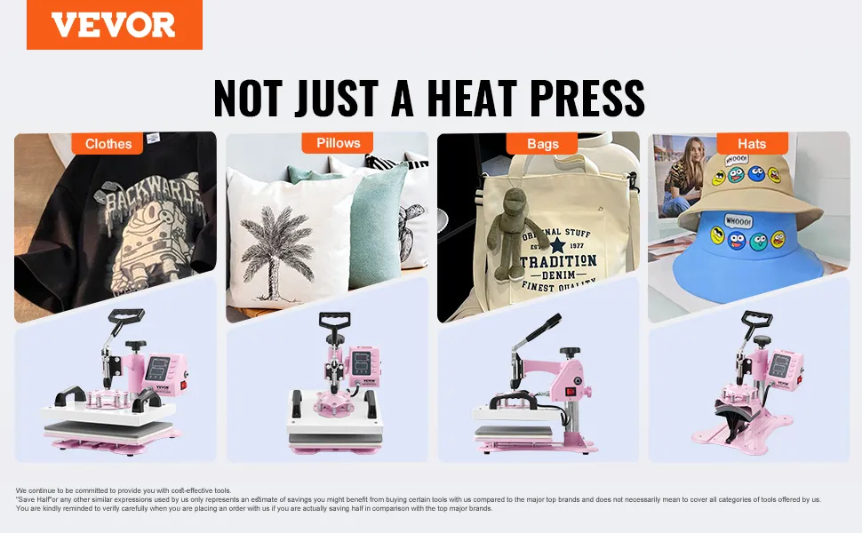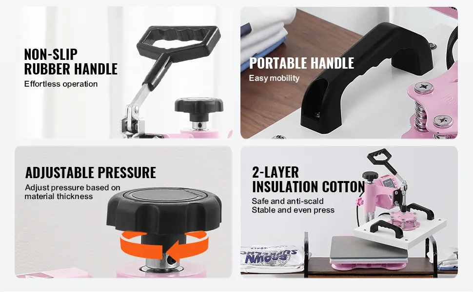 Vielseitige Anwendungen: Die 12 x 10 Zoll (300 x 250 mm) große Transferpresse ist vielseitig einsetzbar und ermöglicht die Übertragung von Designs auf Hemden, Kapuzenpullover, Hosen, Kissen, Taschen, Tischsets und Fliesen. Sie ist eine ausgezeichnete Wahl für Heimwerker oder kleine Unternehmen und erweckt Ihre Inspiration im Alltag zum Leben!