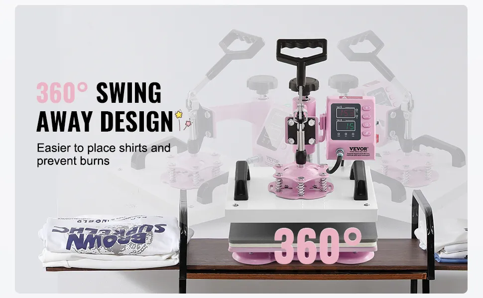 Der Schwenkarm übt einen gleichmäßigen Druck auf die gesamte Heißpresse aus, wodurch vollständige und saubere Transfers gewährleistet werden. Außerdem wird das Heizelement zur Seite geschwenkt, wodurch die Gefahr eines unbeabsichtigten Kontakts verringert wird.