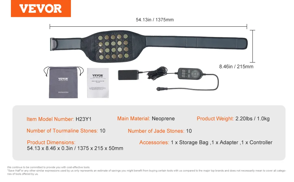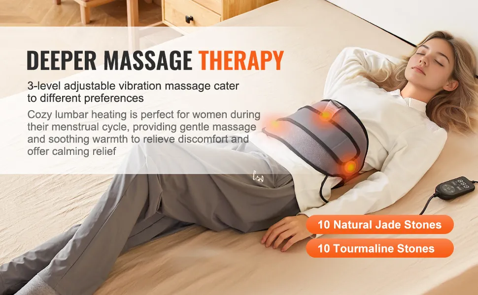 VEVOR Ferninfrarot-Heizkissen, 10 natürliche Jade- und 10 Turmalin-Stein-Heizkissen zur Schmerzlinderung, 103-159 ℉ Infrarot-Heizgürtel mit 3-stufiger Vibrationsmassage für Taille, Lendenwirbelsäule und Bauch, ideales Geschenk