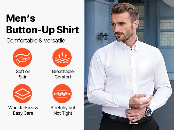 Premium-Stoff und Komfort: Dieses Herrenhemd mit Knopfleiste ist aus hochwertiger Baumwolle gefertigt, die weich, atmungsaktiv und dehnbar ist. Es bietet ganztägigen Komfort und Bewegungsfreiheit, ohne sich eng anzufühlen, hervorragend für den täglichen Gebrauch
