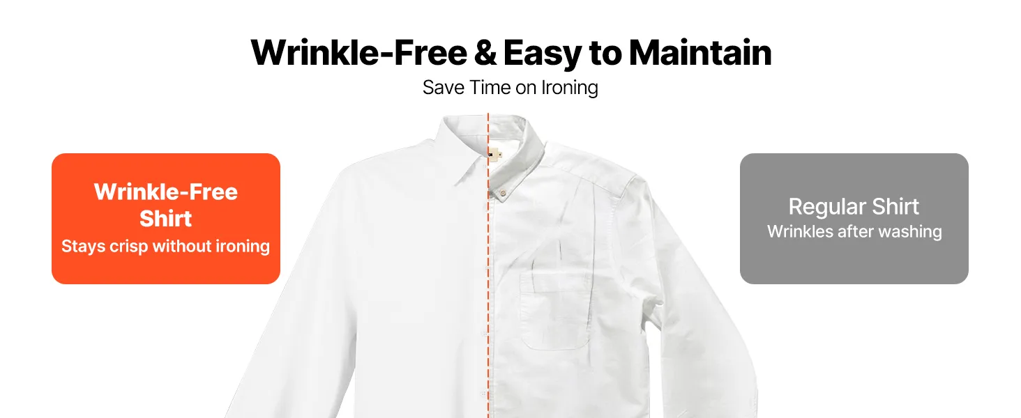 Verbesserte Haltbarkeit: Verstärkte Knöpfe und Doppelnähte an wichtigen Stellen wie Kragen und Manschetten verbessern die Verschleißfestigkeit. Verstellbare Manschetten und ein breiter Kragen behalten ihre Form und sorgen gleichzeitig für einen sicheren Sitz