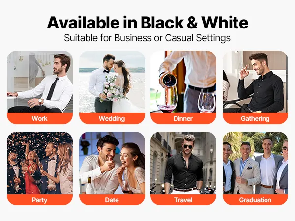 Vielseitig für alle Gelegenheiten: Dieses langärmelige Herrenhemd mit Knopfleiste ist in Schwarz und Weiß in den Größen M, L und XL erhältlich und eignet sich für die Arbeit, Hochzeiten, Freizeitausflüge oder formelle Abendessen – Ihr Lieblingshemd für jede Gelegenheit.