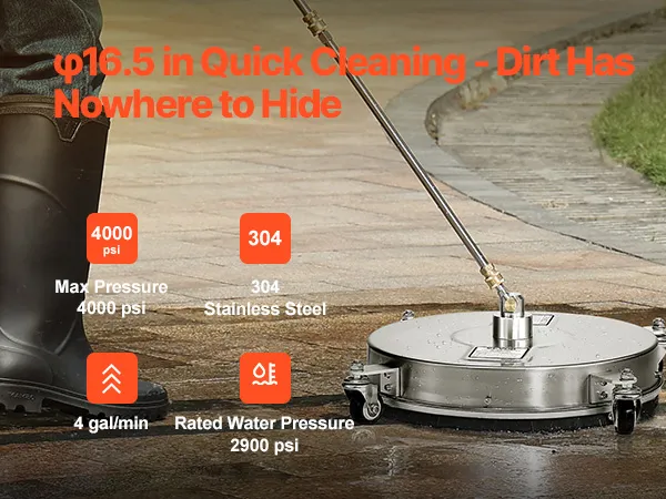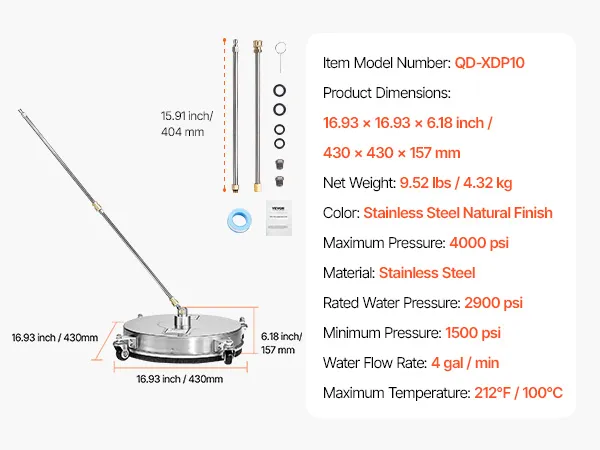 φ16,93 Zoll / 430 mm Schnelles und effizientes Reinigen: Mit einer hohen Durchflussrate von 4 Gallonen/min sorgt dieser φ 16,93 Zoll / 430 mm Hochdruckreiniger für eine gleichmäßige Abdeckung und hinterlässt keine Flecken. Egal, ob es sich um eine große Aufgabe oder eine regelmäßige Reinigung handelt, er macht die Arbeit einfach. Genießen Sie effizientes Reinigen und sparen Sie dabei Zeit und Mühe.