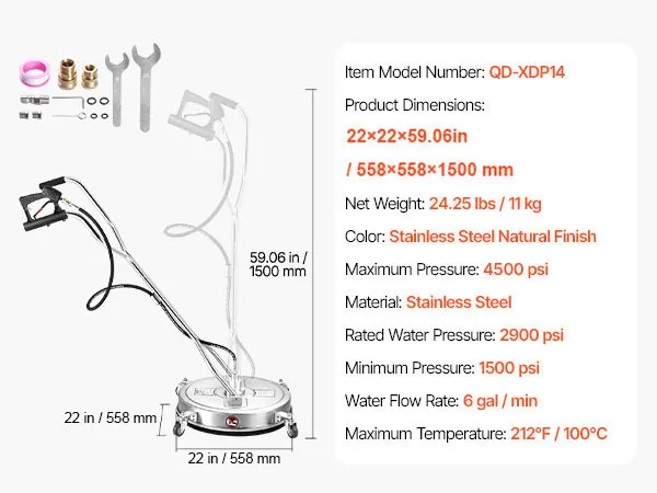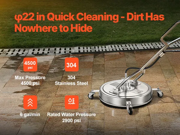 φ22 Zoll / 558 mm Schnell & Effizient: Mehr reinigen, schneller! Mit einer leistungsstarken Durchflussrate von 6 Gallonen/min / 22,7 L/min reinigt dieser φ22 Zoll / 558 mm Hochdruckreiniger jeden Zentimeter und ist somit ideal für große Arbeiten und die tägliche Reinigung. Erledigen Sie Ihre Arbeit schnell und mühelos – und sparen Sie Zeit und Energie