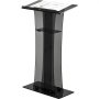 Die dicke Acrylkanzel ist langlebig. Sie widersteht Farbveränderungen und Oxidation und behält ihre Schönheit. Das Material ist leicht zu reinigen, sodass es immer wie neu aussieht. Durch sein geringes Gewicht ist es einfach zu handhaben. Trotz seines geringen Gewichts ist es sehr robust. Das Acryl bietet eine klare Sicht und verbessert die Präsentation. Diese Materialien sind ideal für den Langzeitgebrauch. Sie sind verschleißfest und halten viele Jahre. Eine robuste Konstruktion sorgt dafür, dass sie häufigem Gebrauch problemlos standhält. Als Investition erhalten Sie eine Rendite, die sich im Laufe der Zeit auszahlt. Die Qualität des Acryls garantiert Zuverlässigkeit. Dieses klare Rednerpult wird den Test der Zeit bestehen.