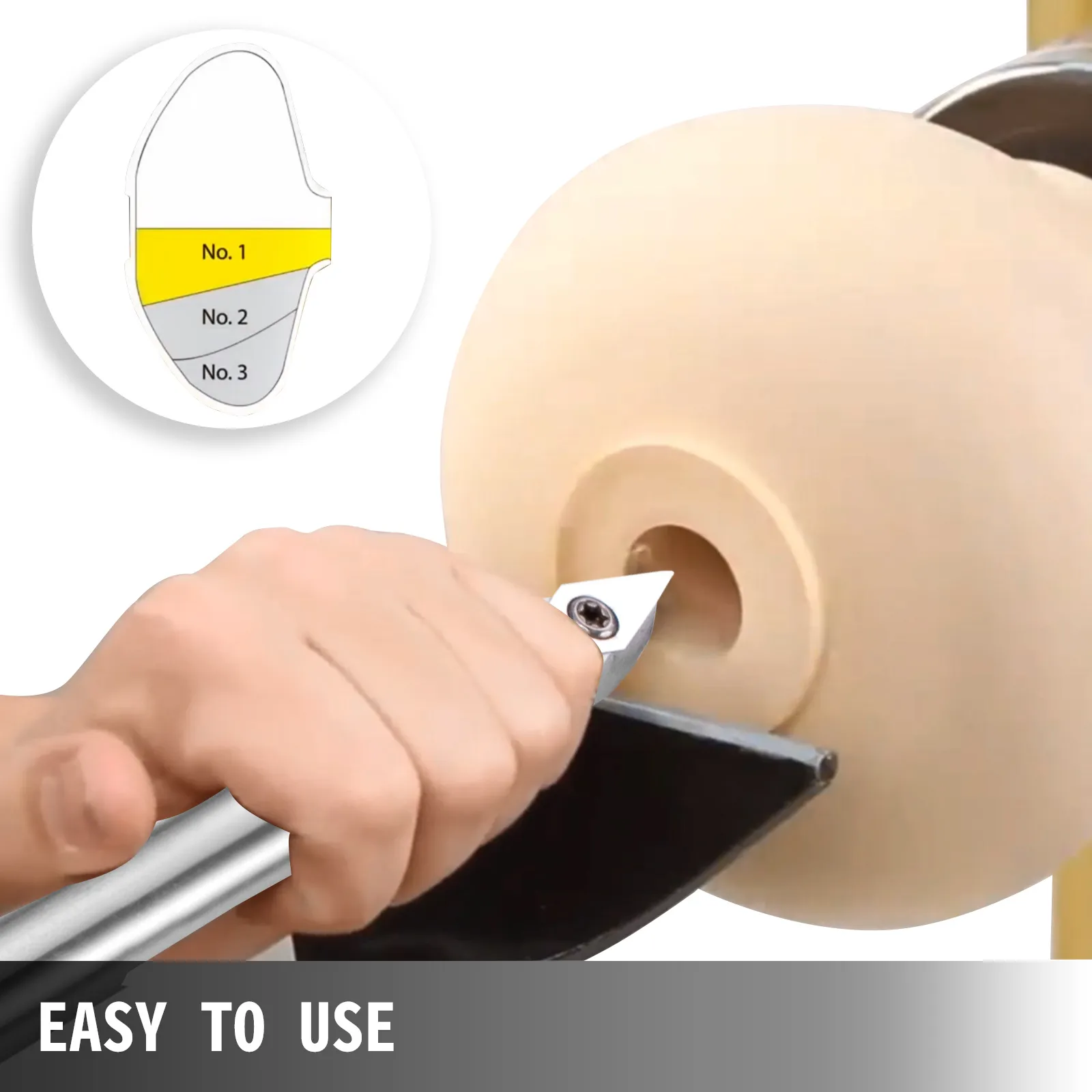 Das Holzdrehmeißel-Set zeichnet sich durch einfache Bedienung aus. Nehmen Sie einen Schlüssel (im Lieferumfang enthalten), um die Mutter zu lösen, und drehen Sie sie dann in einen schärferen Bereich oder ersetzen Sie die Klinge.