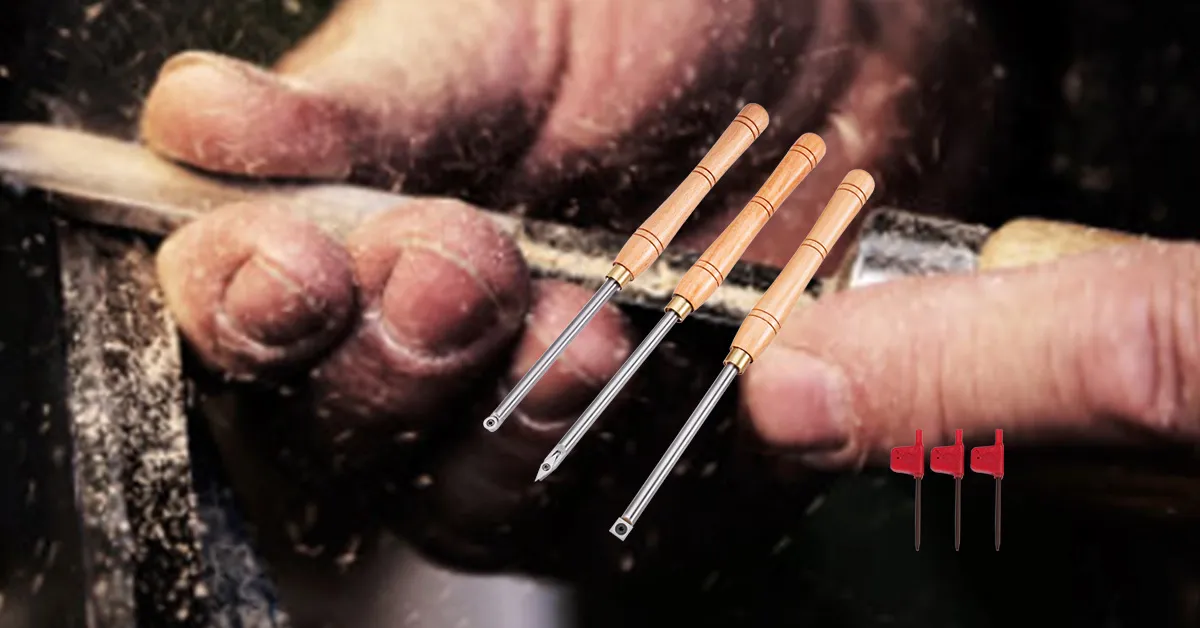 Mit dem Drehmeißel-Set können Sie V-Nuten schneiden, Kurven und Buchten machen und Linien nach Ihren Wünschen schnitzen.