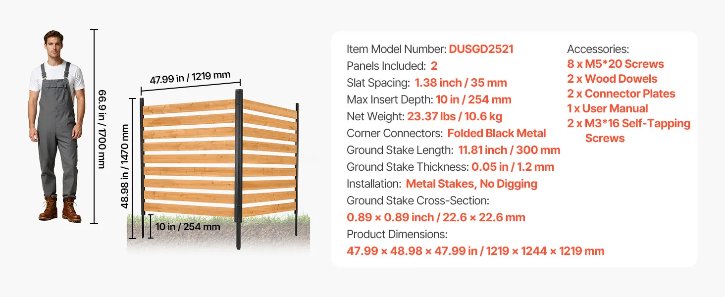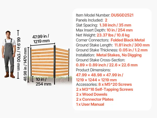 VEVOR 2 tlg. Sichtschutzzaun Klimaanlage Abdeckung, 1219x1244x1219 mm, Holzzaun mit Metallerdspießen für Außenbereich, Einstellbarer Winkel, für Außengeräte wie Klimaanlagen, Wärmepumpe & Mülltonne