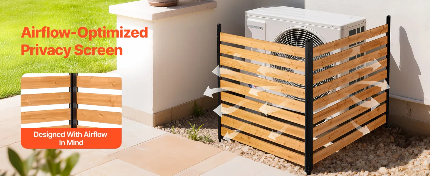 Sichtschutz: Unser dreiteiliger Klimaanlagen-Sichtschutz verdeckt Klimaanlagen, Mülltonnen und Poolzubehör und schützt gleichzeitig Ihre Haustiere. Das Lamellendesign verhindert Einblicke und sorgt gleichzeitig für Luftzirkulation, wodurch die Geräte kühl bleiben. Drei Paneele schließen häufige tote Winkel ab
