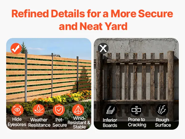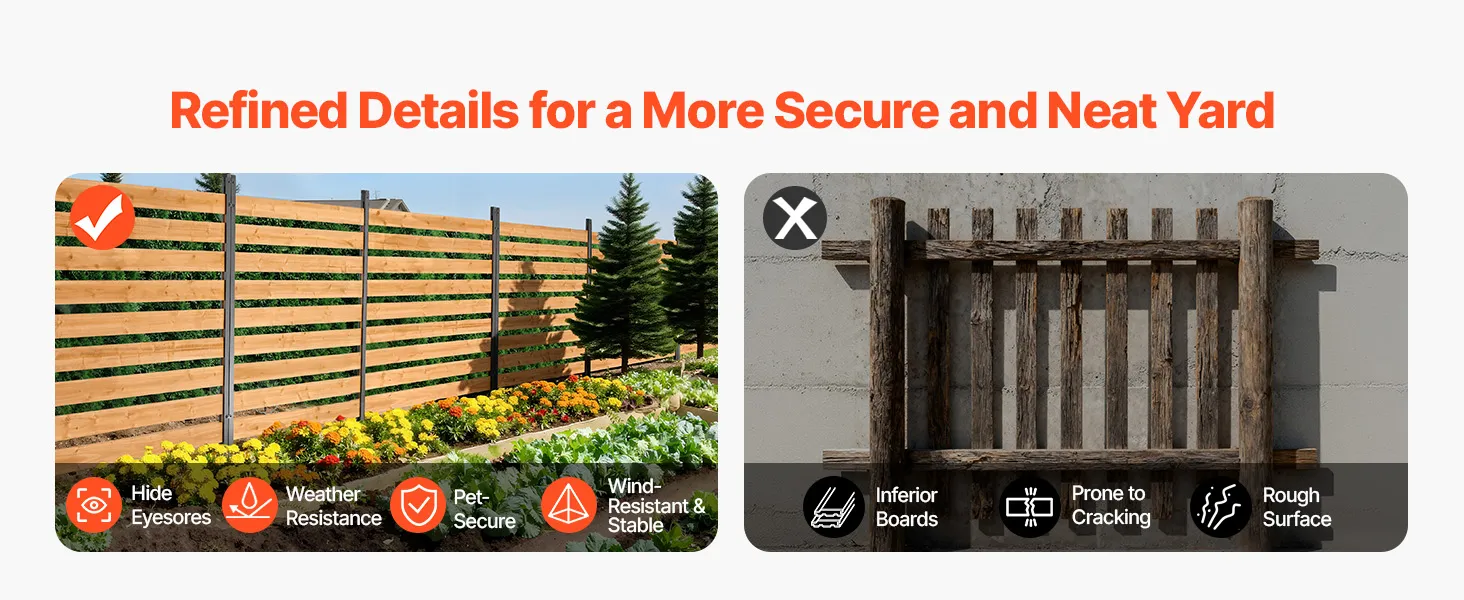 Unser Sichtschutzzaun aus Holz zeichnet sich durch verbesserte Verarbeitung aus, was seine Langlebigkeit und Witterungsbeständigkeit erhöht. Er verdeckt Unordnung, ist tierfreundlich und hält dank seiner robusten Konstruktion auch starkem Wind stand.