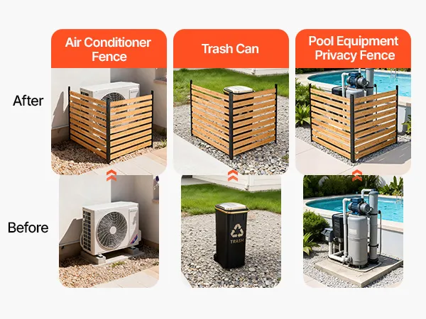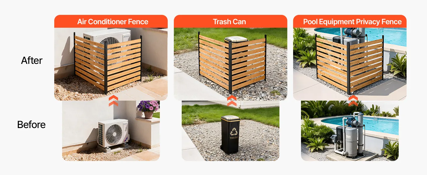 Dieser Klimaanlagen-Zaun verdeckt im Handumdrehen unansehnliche Bereiche und eignet sich ideal zum Verstecken von Klimaanlagen, Mülltonnen, Poolausrüstung und anderem Unrat im Außenbereich.