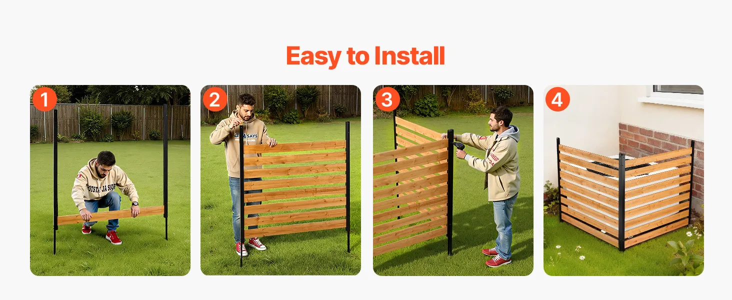 Mühelose Installation: Unser Klimaanlagenzaun wird mit Metallpfählen ohne Erdarbeiten befestigt, die weder Rasen noch befestigte Flächen beschädigen. Dank der übersichtlichen Bedienungsanleitung und der werkzeuglosen Montage ist die Installation schnell und einfach. Die zweiteilige Konstruktion sorgt für zusätzliche Windbeständigkeit und spart Ihnen Zeit und Mühe