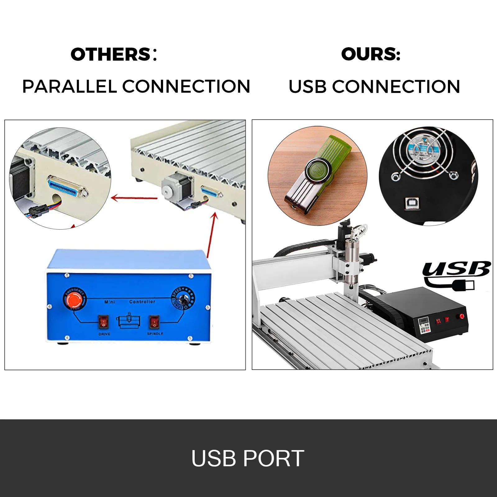 Anstelle des optischen Plattenlaufwerks ist diese Graviermaschine mit einer USB-Anschluss ausgestattet, die er leicht macht, USB-Treiber zu installiere, sodass die MACH 3 Software Gravur steuern kann.