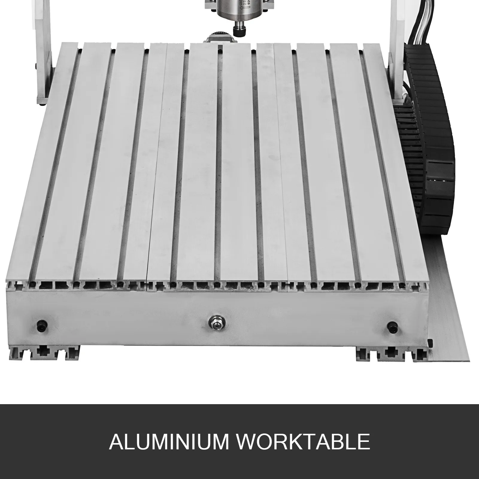 Auf drei Achsen gibt es jeweils ein zweiphasige 57-Schrittmotor(3A) für einfache Bewegung, die durch externe Kupplungen verbunden sind und eine hohe Drehmomentübertragung ermöglicht. Knöpfe mit kleinen Griffen an Schrittmotoren können die Positionierung anpassen. Der wassergekühlte 800W-Spindelmotor auf Z-Achse kann 24000U/min (stufenlose Drehzahlregelung) erreichen.