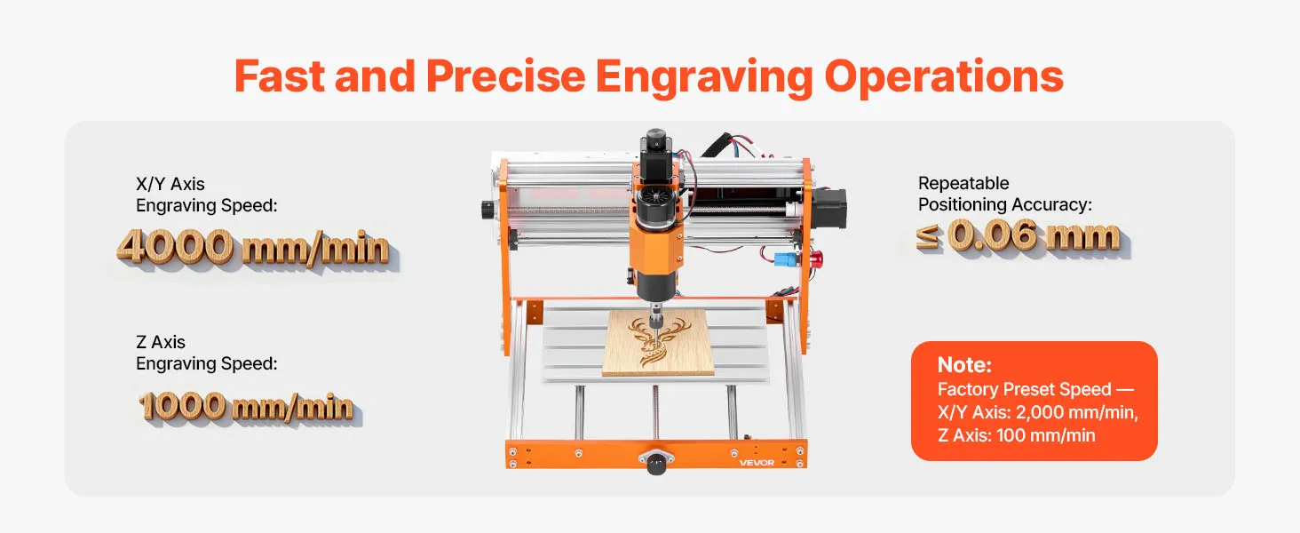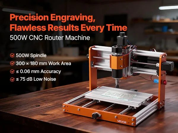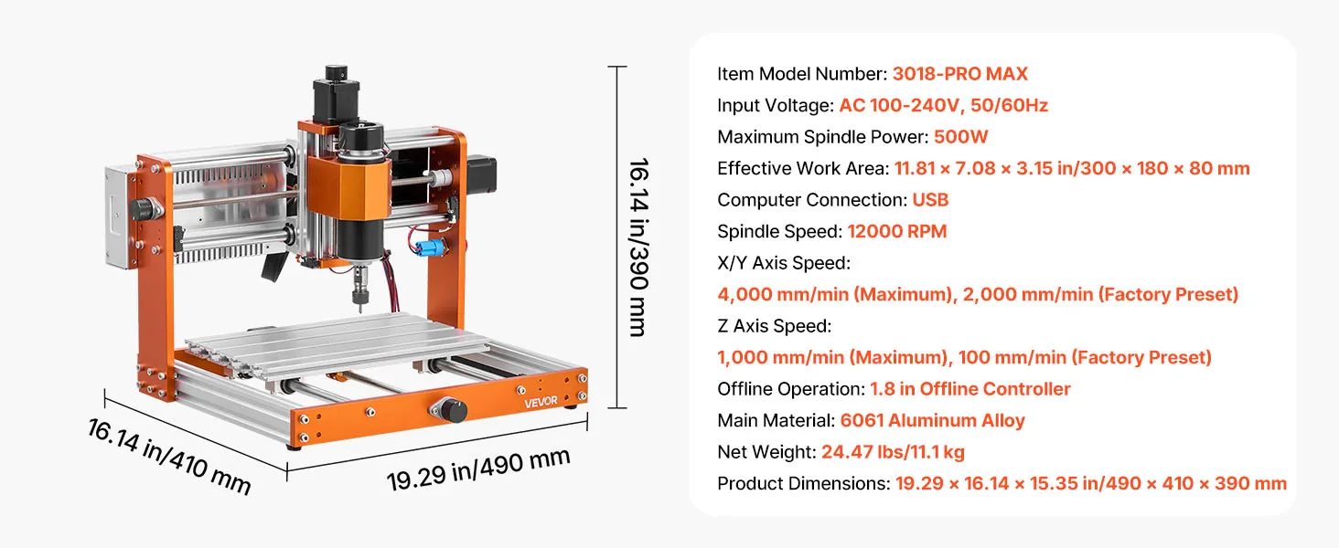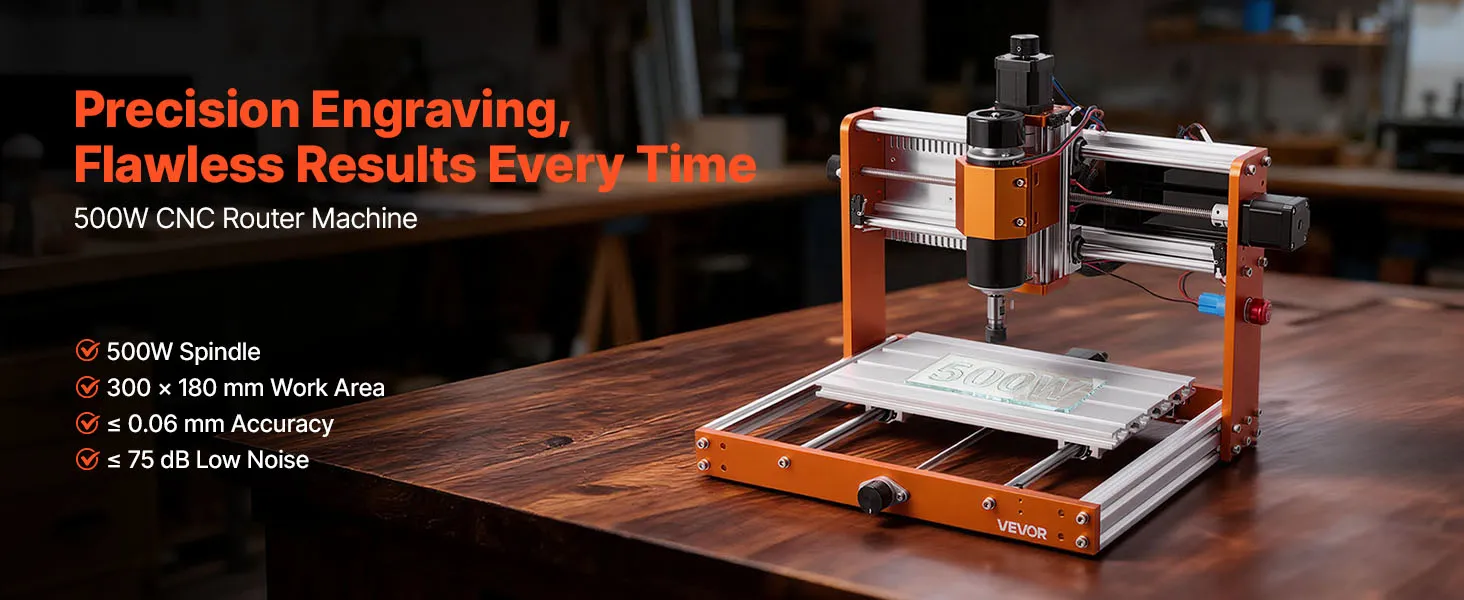 Hochpräzises Gravieren: Die CNC-Fräsmaschine verfügt über einen Arbeitsbereich von 300 x 180 x 80 mm (11,81 x 7,08 x 3,15 Zoll), der auf der Y-Achse auf bis zu 400 mm (15,75 Zoll) erweiterbar ist und eine Lasererweiterung unterstützt. Hinzu kommen eine 500-W-Spindel, ein Rahmen aus Aluminiumlegierung und eine wiederholgenaue Positioniergenauigkeit von ≤ 0,06 mm