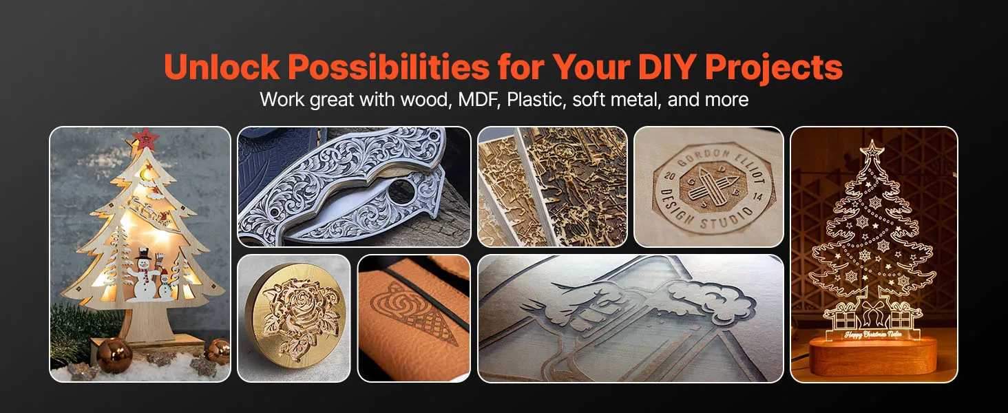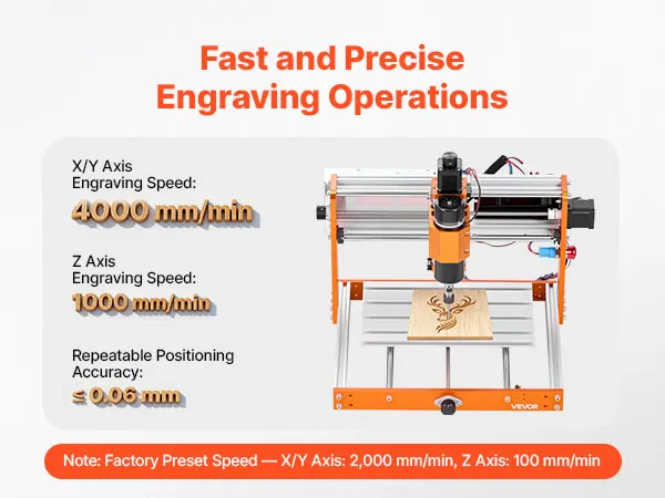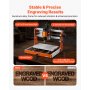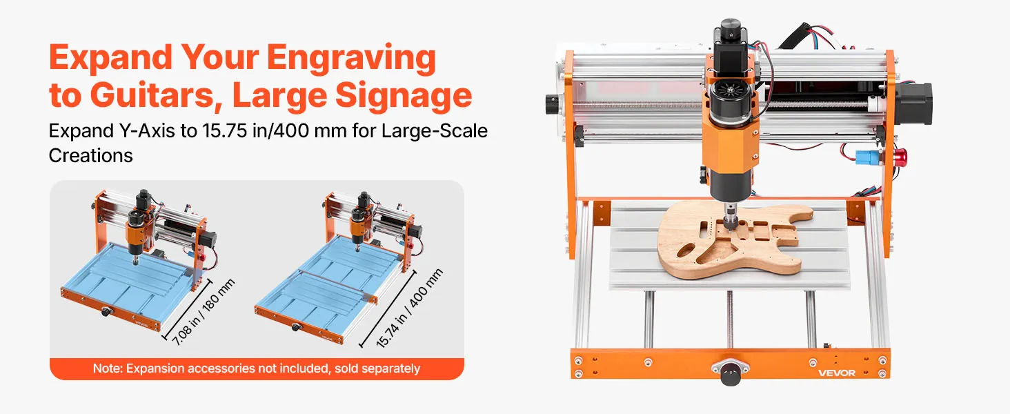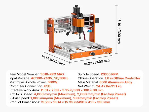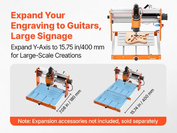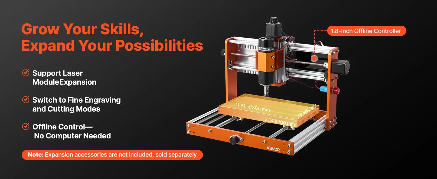 Hochpräzises Gravieren: Die CNC-Fräsmaschine verfügt über einen Arbeitsbereich von 300 x 180 x 80 mm (11,81 x 7,08 x 3,15 Zoll), der auf der Y-Achse auf bis zu 400 mm (15,75 Zoll) erweiterbar ist und eine Lasererweiterung unterstützt. Hinzu kommen eine 500-W-Spindel, ein Rahmen aus Aluminiumlegierung und eine wiederholgenaue Positioniergenauigkeit von ≤ 0,06 mm