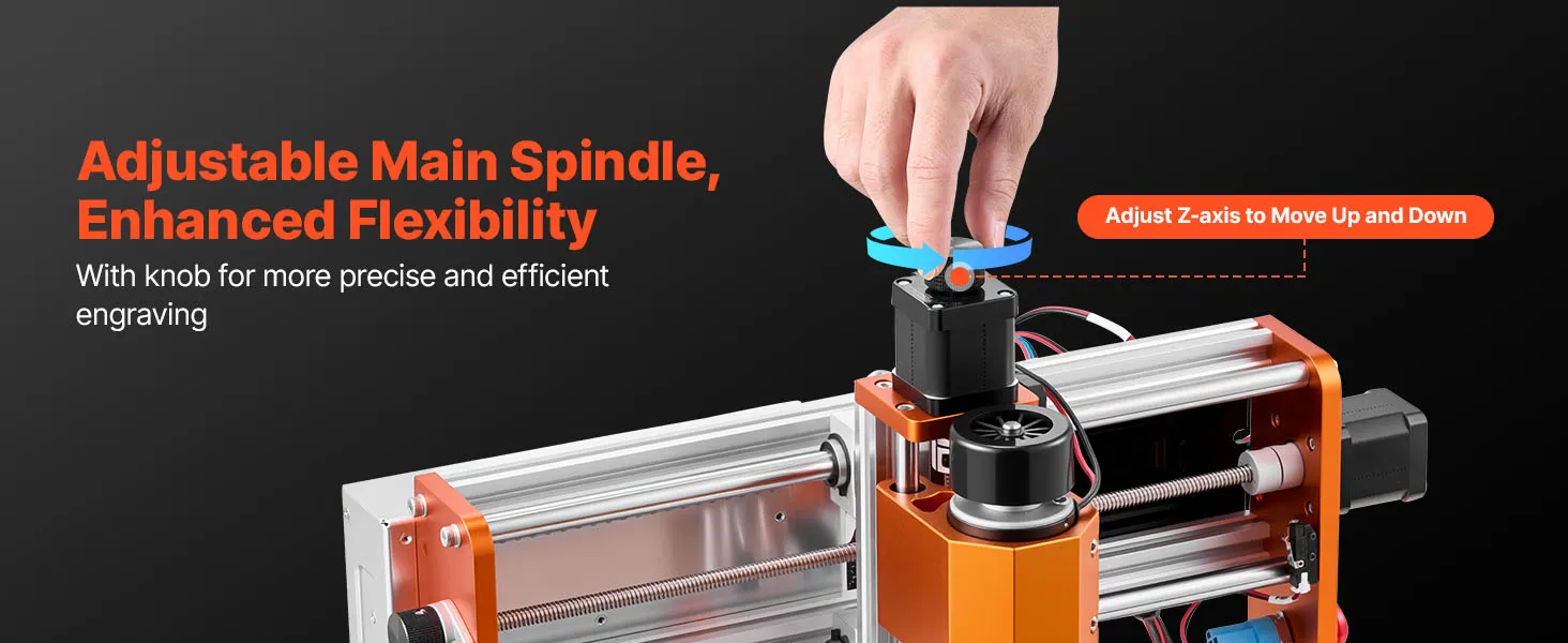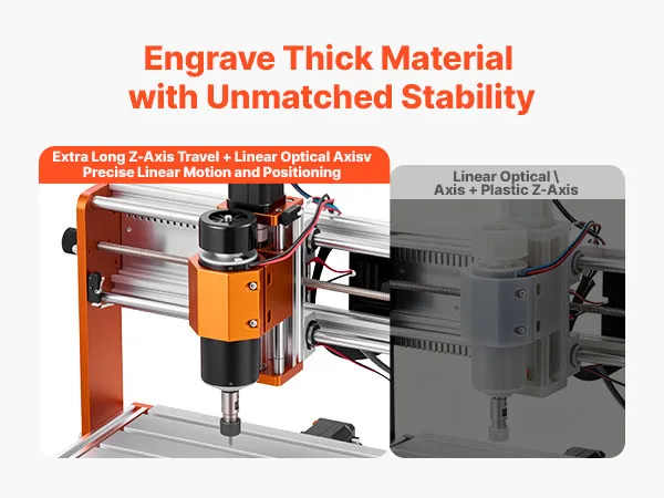 Extra langer Z-Achsen-Hub: Ausgestattet mit einem 80 mm langen Z-Achsen-Hub und einer 12 mm verstärkten linearen optischen Achse ermöglicht diese CNC-Holzfräse präzise lineare Bewegungen und damit stabiles, tiefes Fräsen sowie Reliefgravuren für dickes Holz, große Stempel usw.