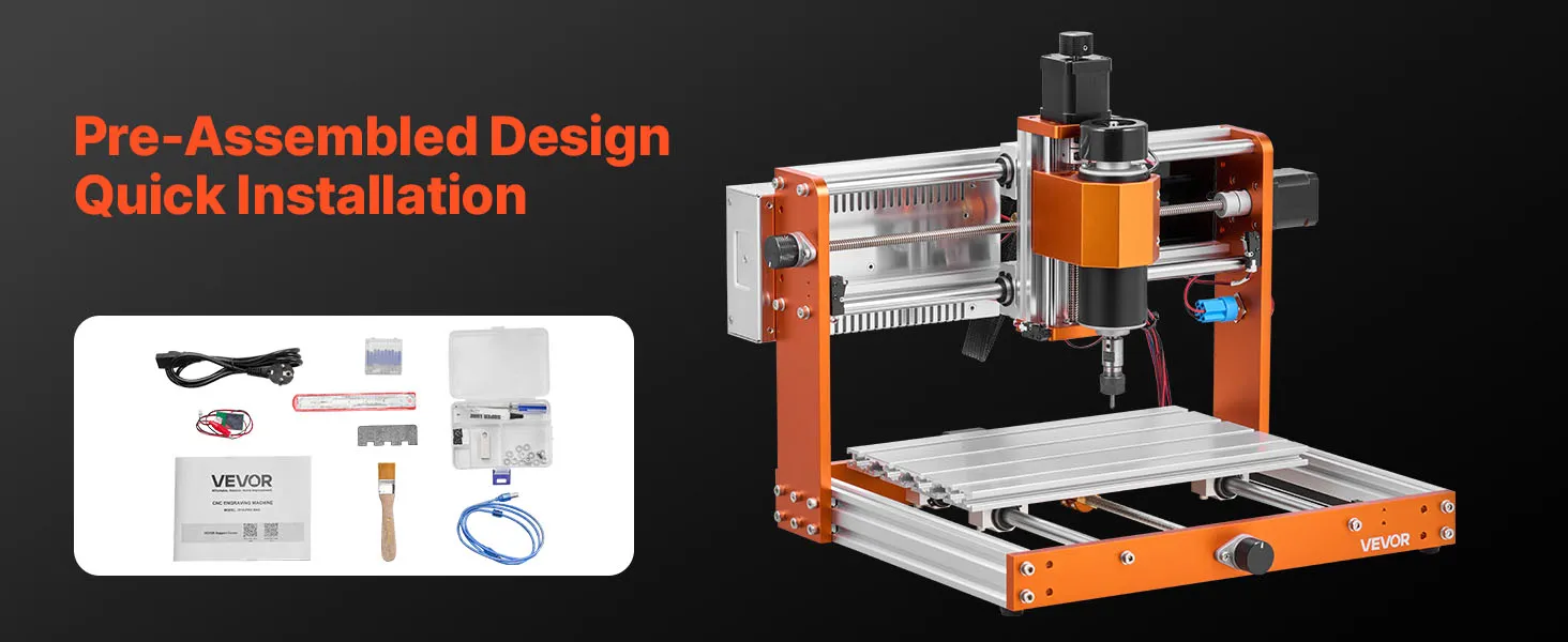 Einfache Montage, Dual-Mode-Design: Vormontierte und vorverdrahtete Hauptkomponenten vereinfachen die Einrichtung. Diese CNC-Fräsmaschine vereint CNC- und Lasergravurmodus – wechseln Sie mühelos zwischen Schneiden, Gravieren und Markieren, ohne die Maschine wechseln zu müssen.