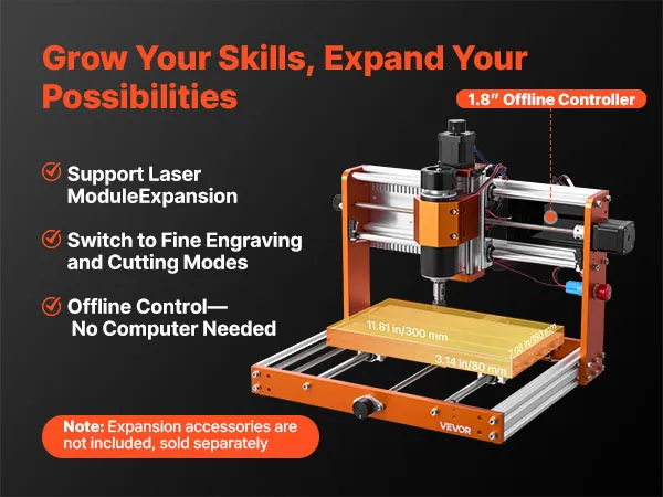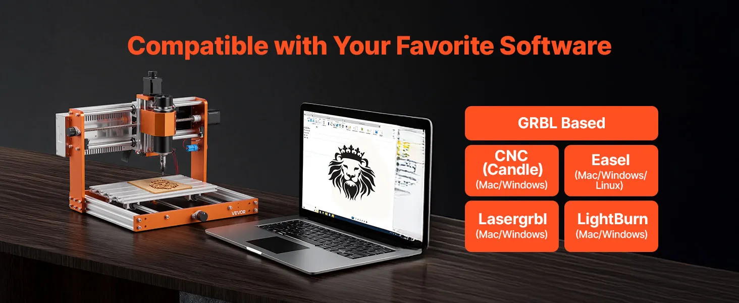 Breite Softwarekompatibilität: Kompatibel mit allen Programmen, die die GRBL-Firmware f1.1 unterstützen. Inklusive Candle-Software; läuft unter Mac/Windows/Linux und unterstützt CNC (Candle), Easel, LaserGRBL und LightBurn. Der 1,8-Zoll (4,57 cm)-Offline-Controller ermöglicht den Betrieb ohne PC