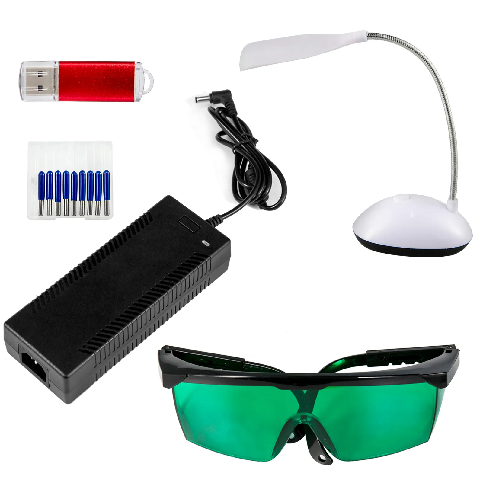 Alles Zubehör, das Sie benötigen, wie ein USB-Laufwerk, ein Augenschutz, Cutter, eine Tischlampe usw., wird viel Komfort bringen und die Arbeitseffizienz verbessern.