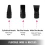 Der Schlauch für Tierföhn ist flexibel und kann auf maximal 228,6 cm gedehnt werden. Dieses Kit ist mit 3 verschiedenen Düsen ausgestattet: breiter Schlitz / Standardschlitz / zylindrische Düse.