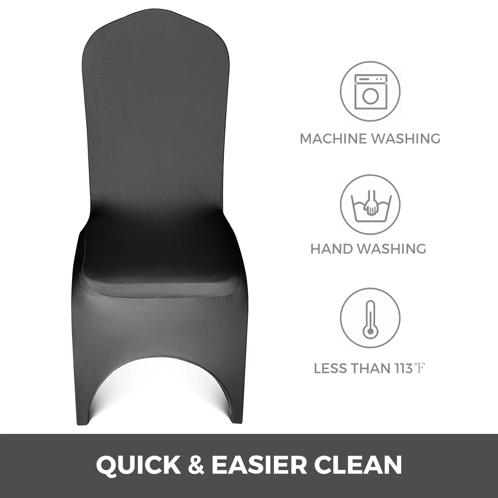 Das einzigartige gewölbte Frontdesign der Stuhlbezüge ermöglicht Beinbewegungen und verhindert, dass der Bezug den Boden abkratzt und schmutzig oder zerrissen wird.