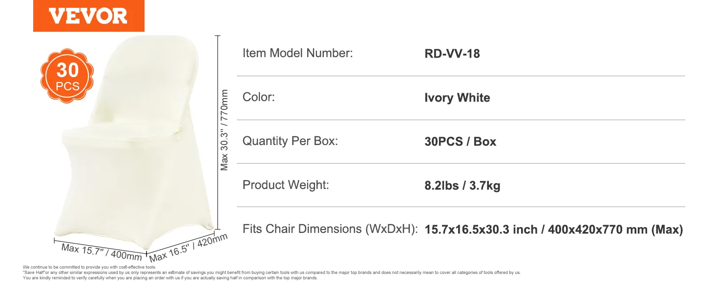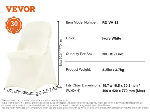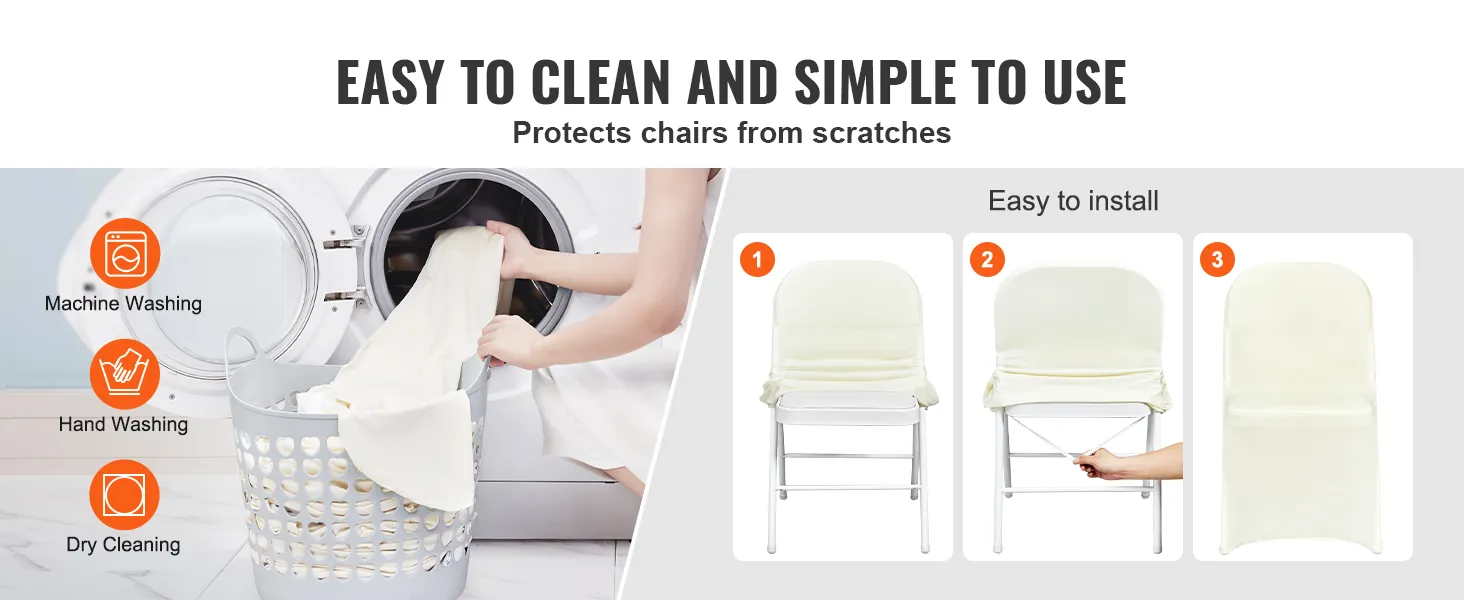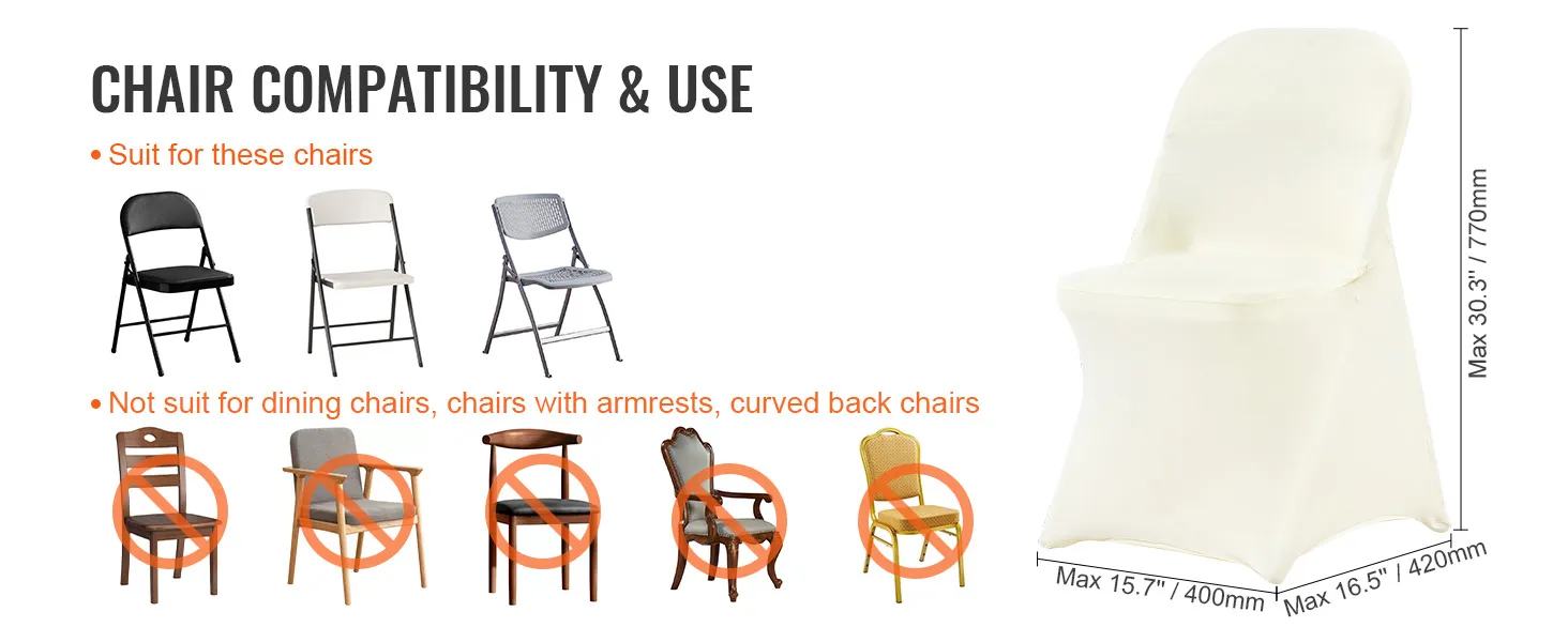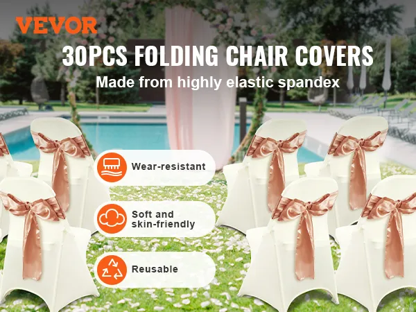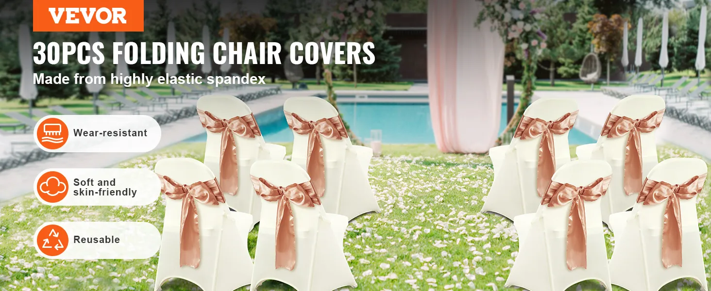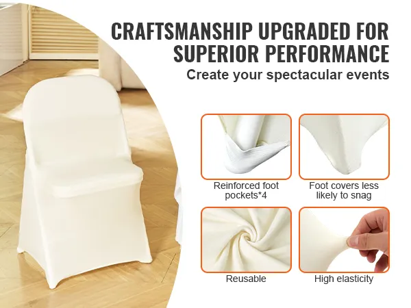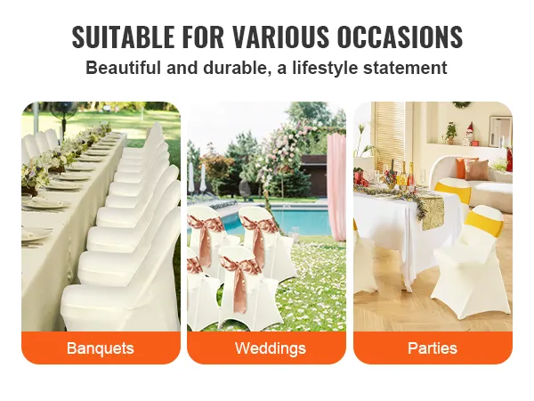 Die elastischen Klappstuhlbezüge aus Spandex von VEVOR sind so konzipiert, dass sie die Ästhetik jeder Veranstaltung verbessern. Das dehnbare Material sorgt für eine bequeme Passform und verwandelt schlichte Stühle in elegante Sitzgelegenheiten. Diese Stuhlbezüge sind perfekt für Hochzeiten, Partys und verschiedene Feierlichkeiten. Ihr schlankes, modernes Design verleiht Eleganz und wertet das Gesamtdekor des Veranstaltungsortes auf. Egal, ob Sie eine intime Zusammenkunft oder eine große Veranstaltung veranstalten, diese Bezüge sorgen für einen eleganten und einheitlichen Look, der bei den Gästen einen bleibenden Eindruck hinterlässt. Da sie für eine Vielzahl von Stühlen geeignet sind, verleiht jeder Veranstaltung eine anspruchsvolle Note.
