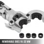 Die Rohrpresszange wird mit vier austauschbaren Backen unterschiedlicher Größe (16 mm, 20 mm, 25 mm, 32 mm) geliefert, die für die meisten Rohrpressarbeiten geeignet sind. Der Kopf ist leicht zu öffnen, sodass die Backen mühelos gewechselt werden können.