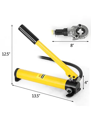 Dieser hydraulische Crimpwerkzeugsatz ist mit einer Standard-Hydraulikpumpe mit einem um 360° drehbaren Kopf mit einer Druckkraft von 6 Tonnen ausgestattet. Einfaches Crimpen von Rohren, das Zeit und Mühe spart. Es ist leicht und kompakt.